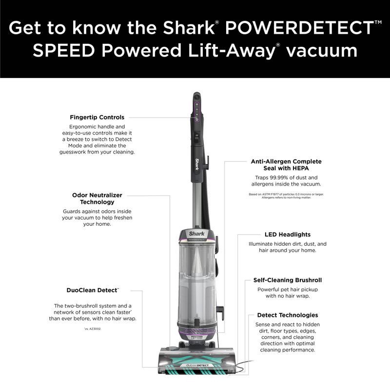Shark PowerDetect Upright Vacuum AZ3901 12" Cleaning Path Purple: HEPA Filter, Pet Hair, Multi-Surface