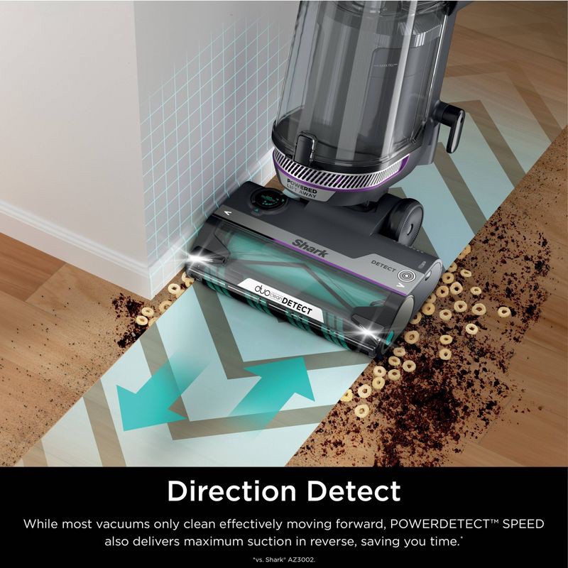 - DIRECTION DETECT: Suction power in both forward and reverse: Shark's Direction Detect sensor recognizes your vacuuming direction and automatically sends powerful suction wherever it's needed, for maximum cleaning in both forward and reverse, saving you time.
