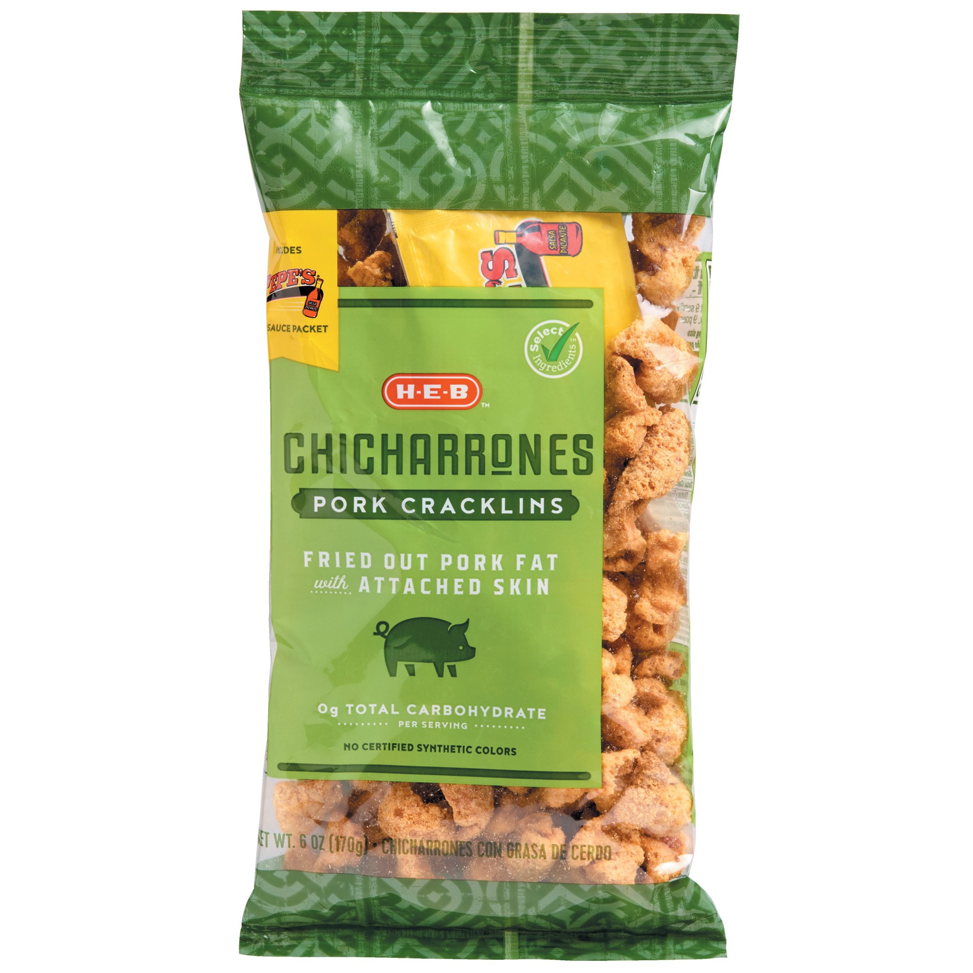 Mix up your usual snack selection by picking up this bag of H-E-B Chicharrones Pork Cracklins. Savory with a crispy texture, they come with a packet of tasty hot sauce for dressing them up a bit. Made…