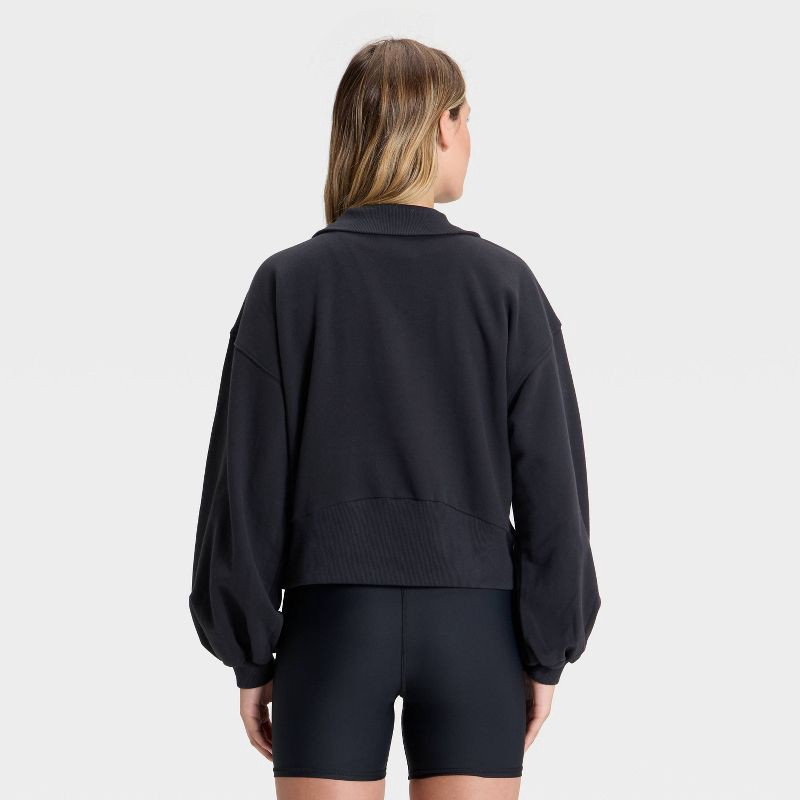 Enjoy your active days in style with this Henley French Terry Sweatshirt from JoyLab™. Made from a fabric blend cotton, recycled cotton and recycled polyester, this crop sweatshirt provides all-day co…