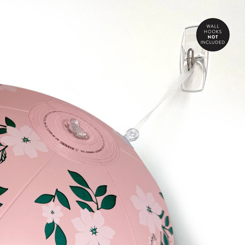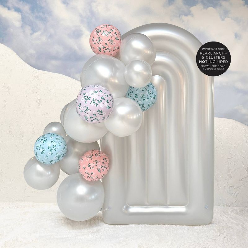 - Single accent balloons feature floral print in blush pink, sky blue and lavender