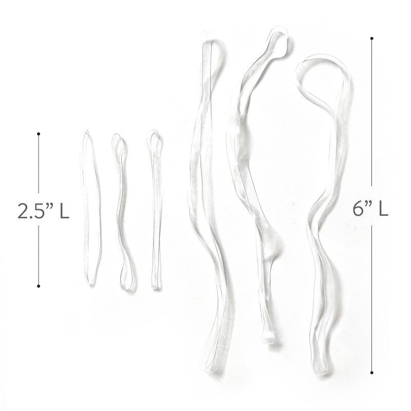 - Features eyelet hook on the back of each accent to hang or tie where desired and a set of clear elastic latex-free bands for securing