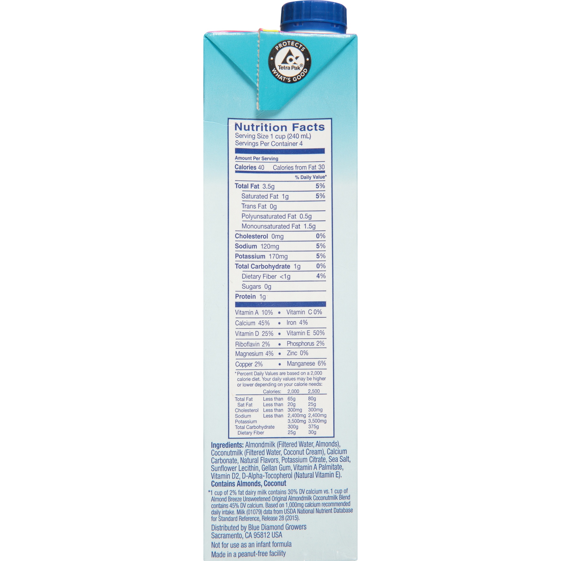 Blue Diamond Almond Breeze Unsweetened Coconut Original Shelf-Stable Almondmilk, 32 oz