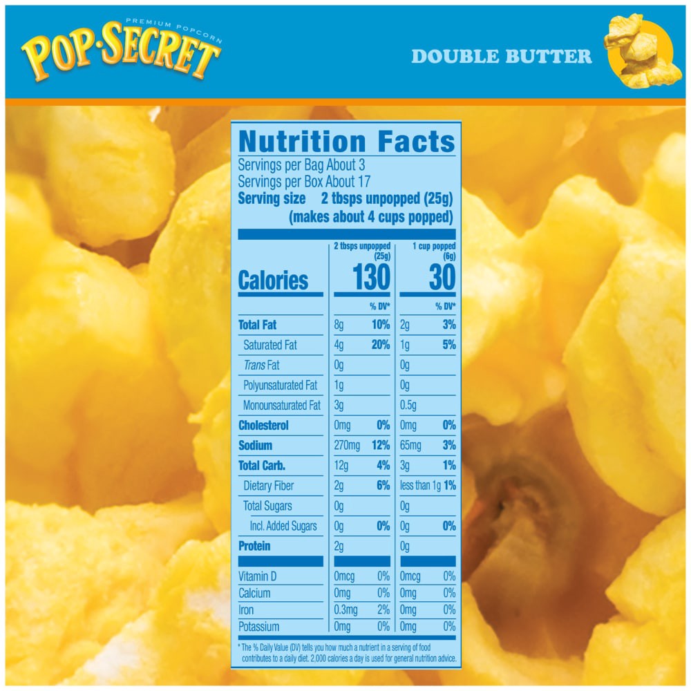 Pop Secret Double Butter Flavor popcorn is the next level in buttery flavor, and our most buttery-tasting popcorn yet. What’s our secret for the best popcorn? Kernels popped up light and fluffy with d…
