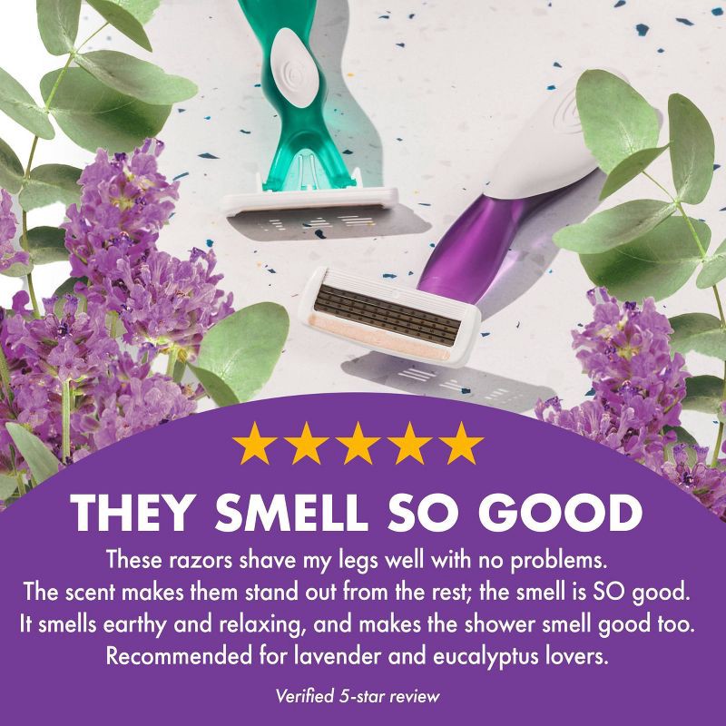 - These women's disposable razors have lavender and eucalyptus scented handles to give a spa-like touch to your shaving session