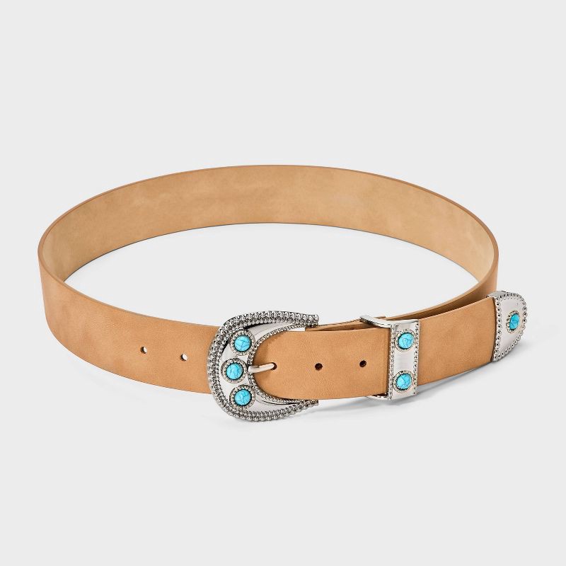 Western Faux Suede and Metal with Turquoise Western Buckle - Universal Thread™ Taupe L