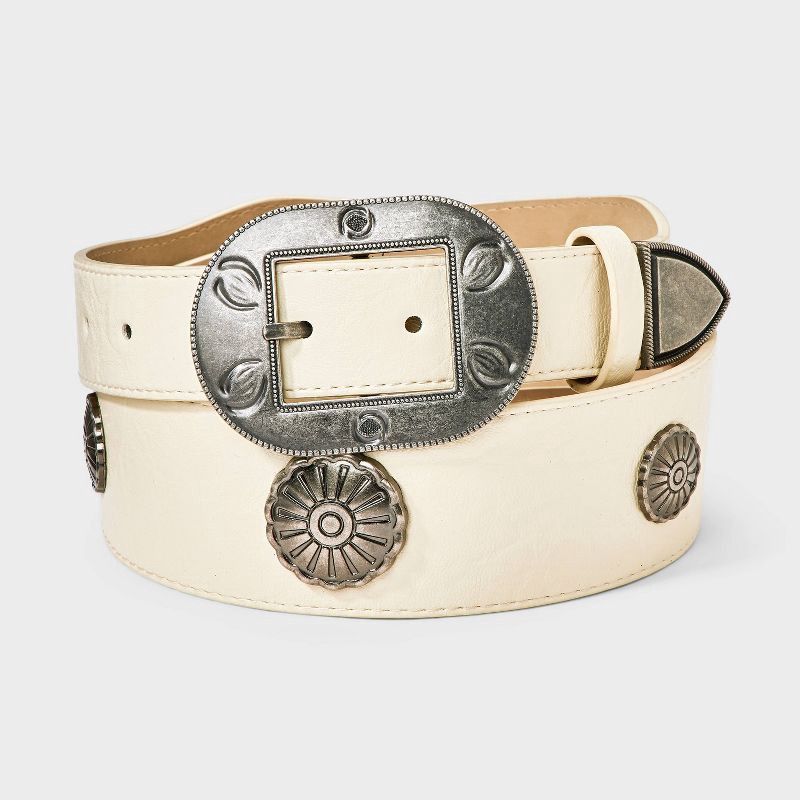 Western Wide Buckle Western Studded Belt - Universal Thread™ Cream XS