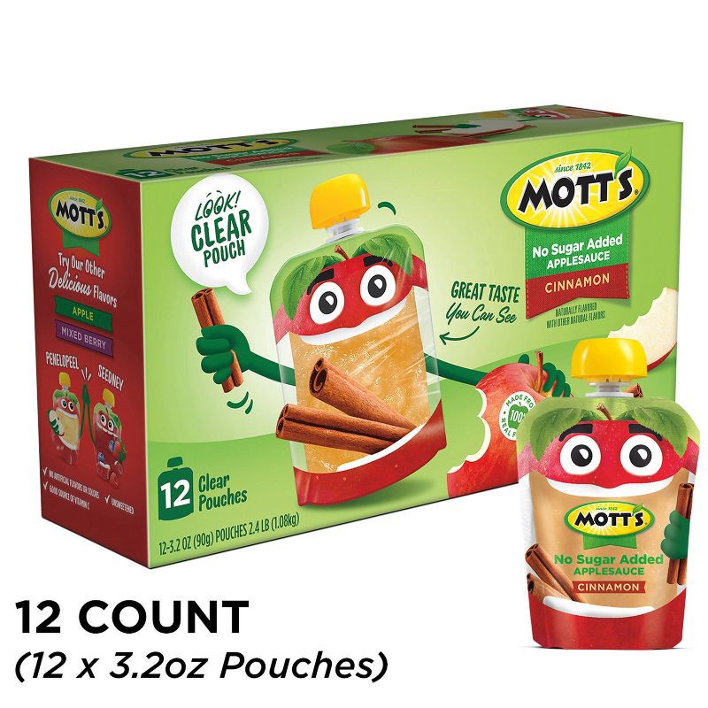 Mott's No Sugar Added Cinnamon Applesauce Pouches - 38.4oz/12ct