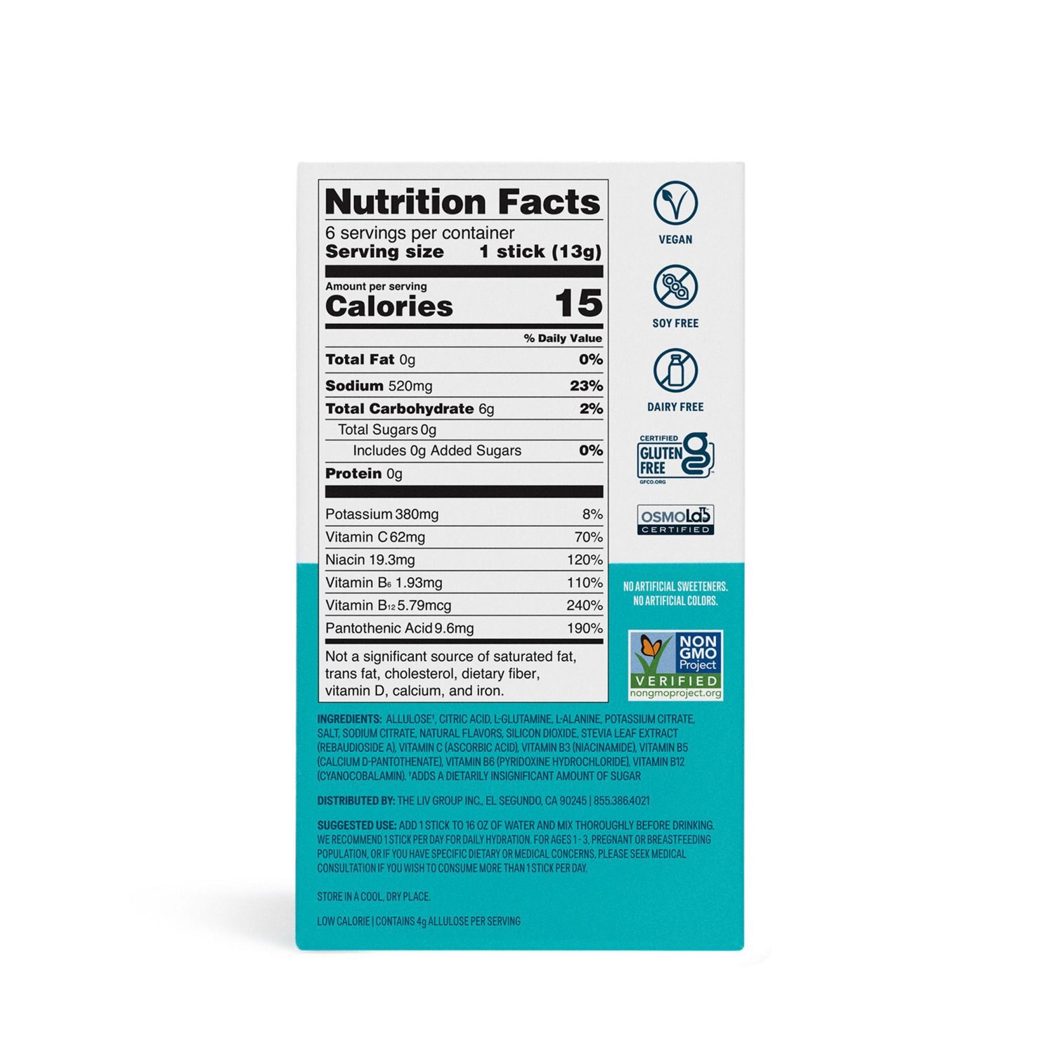 Allulose(a), Citric Acid, L-Glutamine, L-Alanine, Potassium Citrate, Salt, Sodium Citrate, Natural Flavors, Silicon Dioxide, Stevia Leaf Extract (Rebaudioside A), Vitamin C (Ascorbic Acid), Vitamin B3…