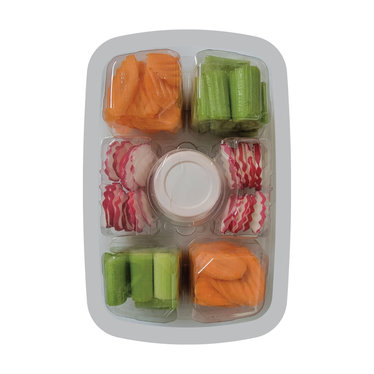 Skip the prep and serve Taylor Farms convenient veggie trays, filled with fresh, cleaned vegetables like carrots, celery and radishes. And the dip is included!