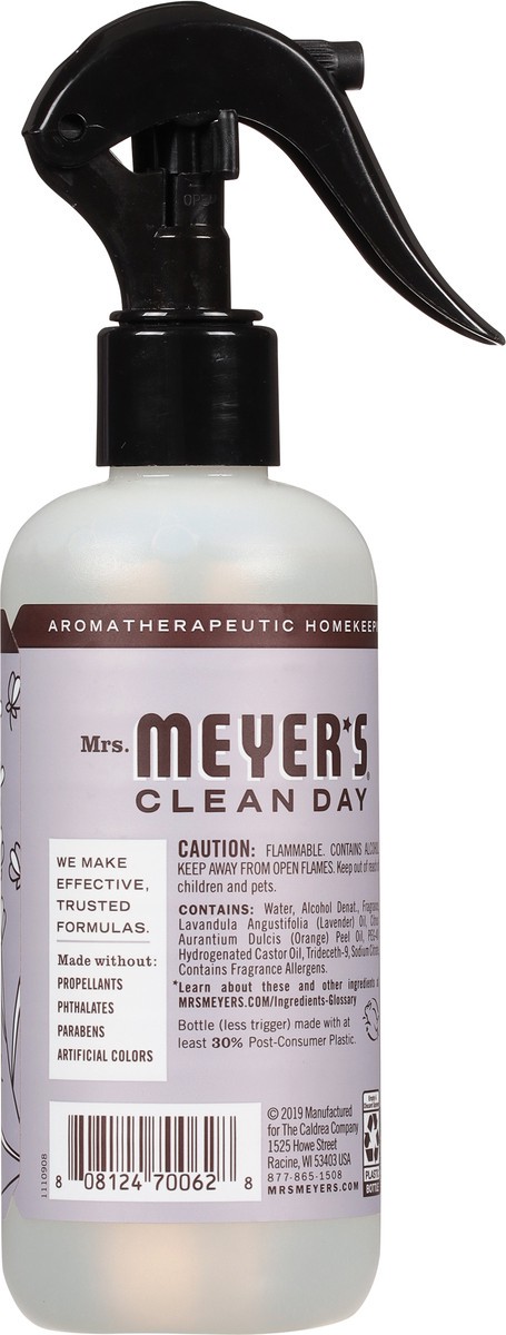 - Mrs. Meyer’s Clean Day Lavender air freshener spray is made with essential oils and other thoughtfully chosen ingredients