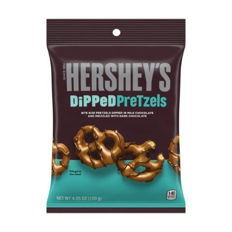 HERSHEY’S DiPPeD PreTzels are crunchy bite-sized pretzels, perfectly covered in smooth HERSHEY’S Milk Chocolate An extra drizzle of HERSHEY’S SPECIAL DARK Chocolate make them the chocolate dipped pret…