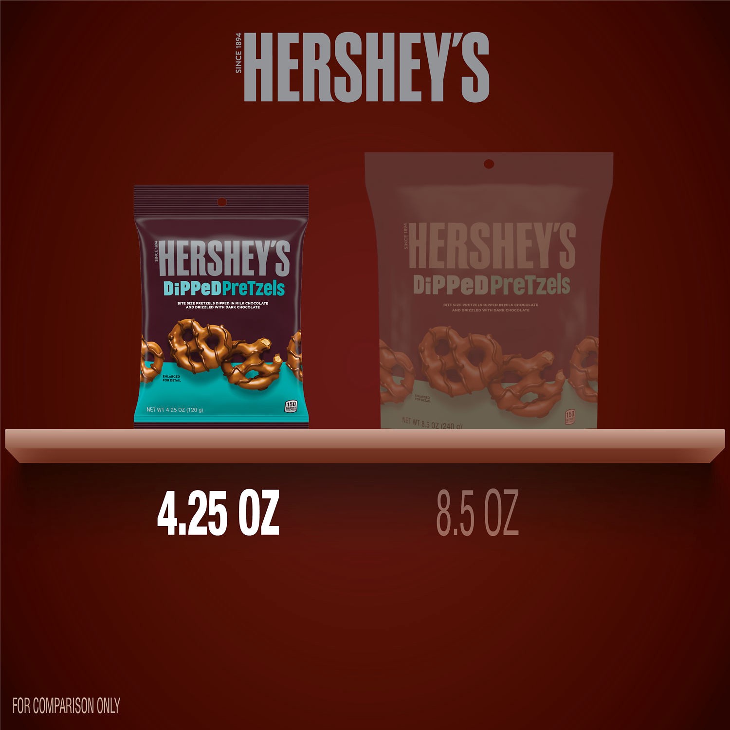 Make snacking a moment you look forward to with HERSHEY'S dipped pretzels! This delightful treat is a fresh, crunchy pretzel dipped in creamy milk chocolate and drizzled with rich dark chocolate for b…