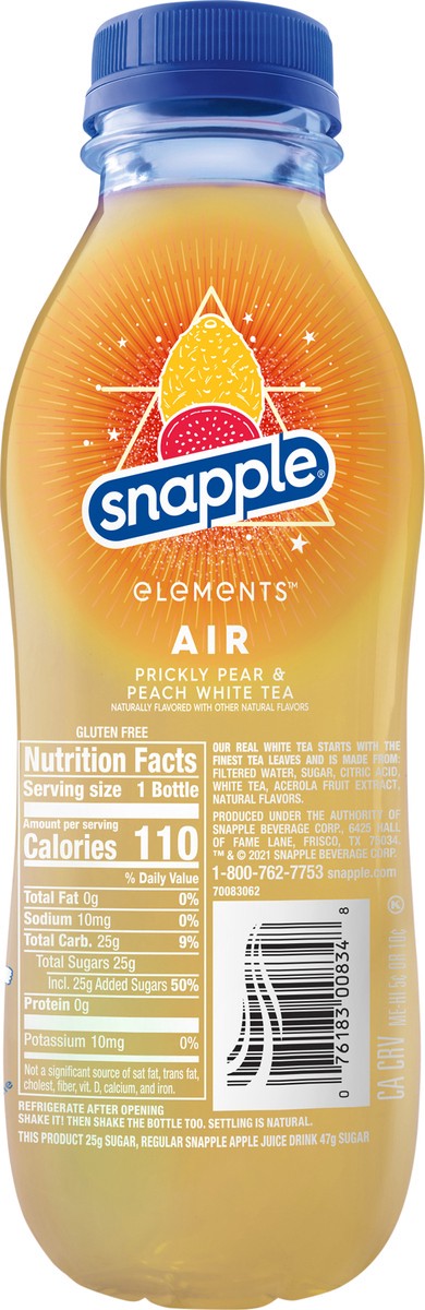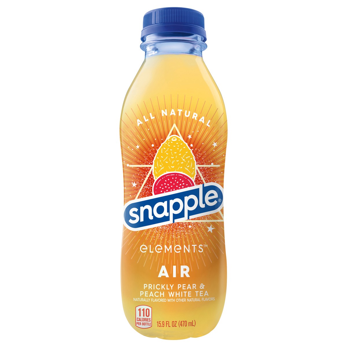 Uncap amazing with Snapple Elements. Impossibly light and refreshing, Snapple Elements Air tea combines Prickly Pear and Peach flavors with light White Tea. Do yourself a flavor! Snapple Elements Air …