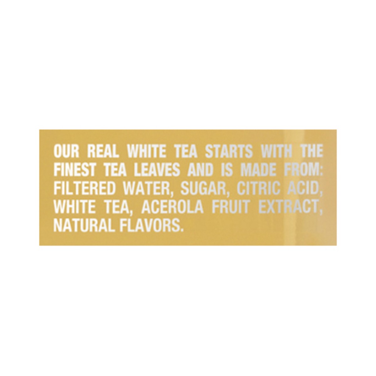 Our Real White Rea Starts with the Finest Tea Leaves and is Made from: Filtered Water, Sugar, Citric Acid, White Tea, Acerola Fruit Extract, Natural Flavors.