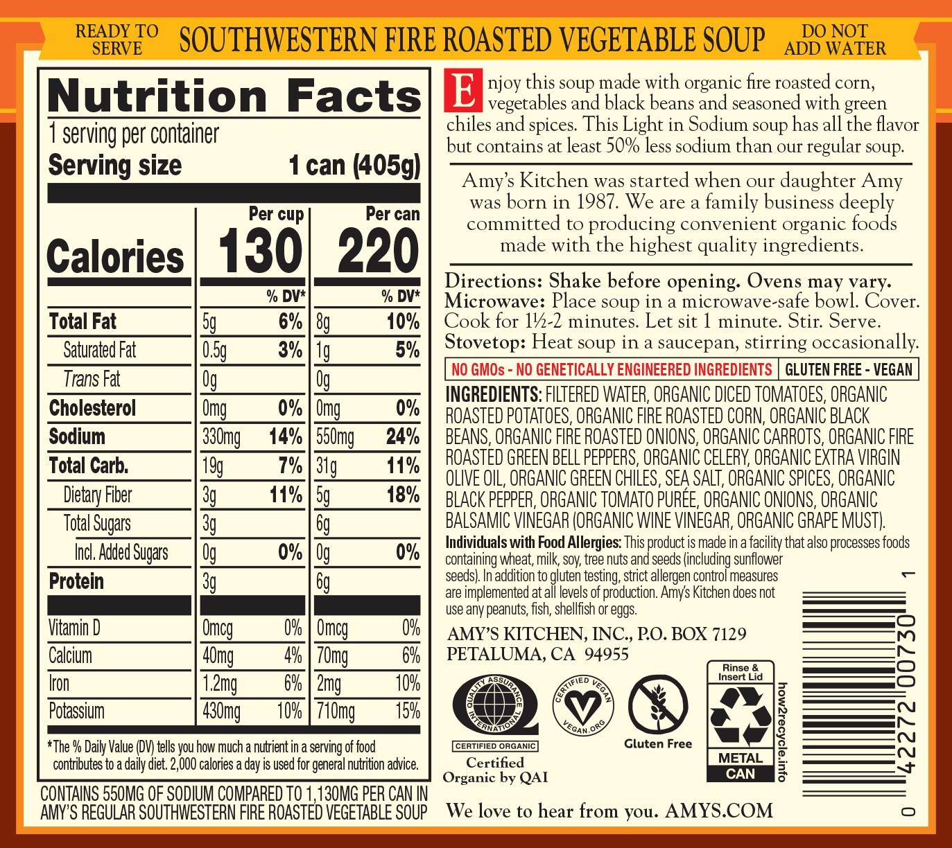 Amy's Light In Sodium Fire Roasted Southwestern Vegetable Soup - 14.3 Oz
