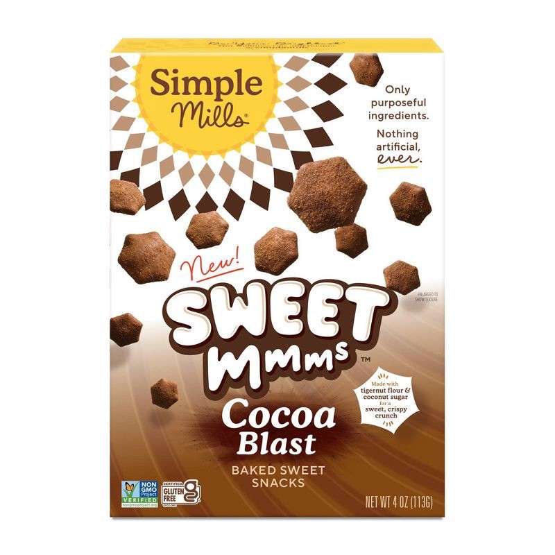 - Each carton contains 4oz of delicious Simple Mills Cocoa Blast Sweet Mmms