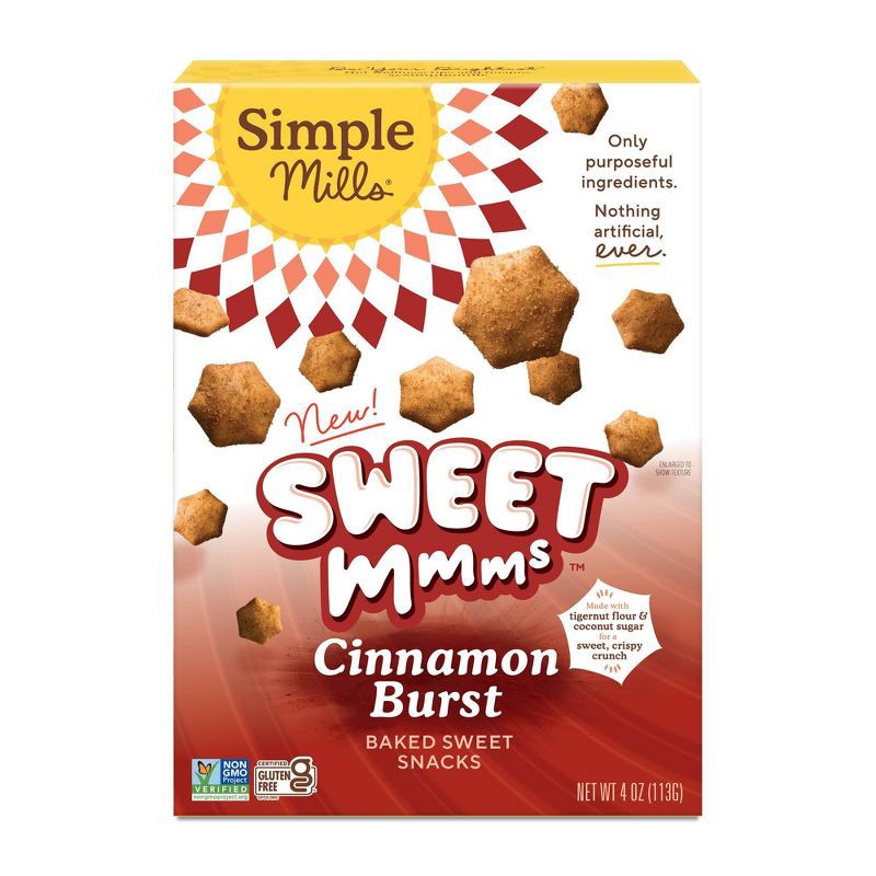 - Each carton contains 4oz of delicious Simple Mills Cinnamon Burst Sweet Mmms