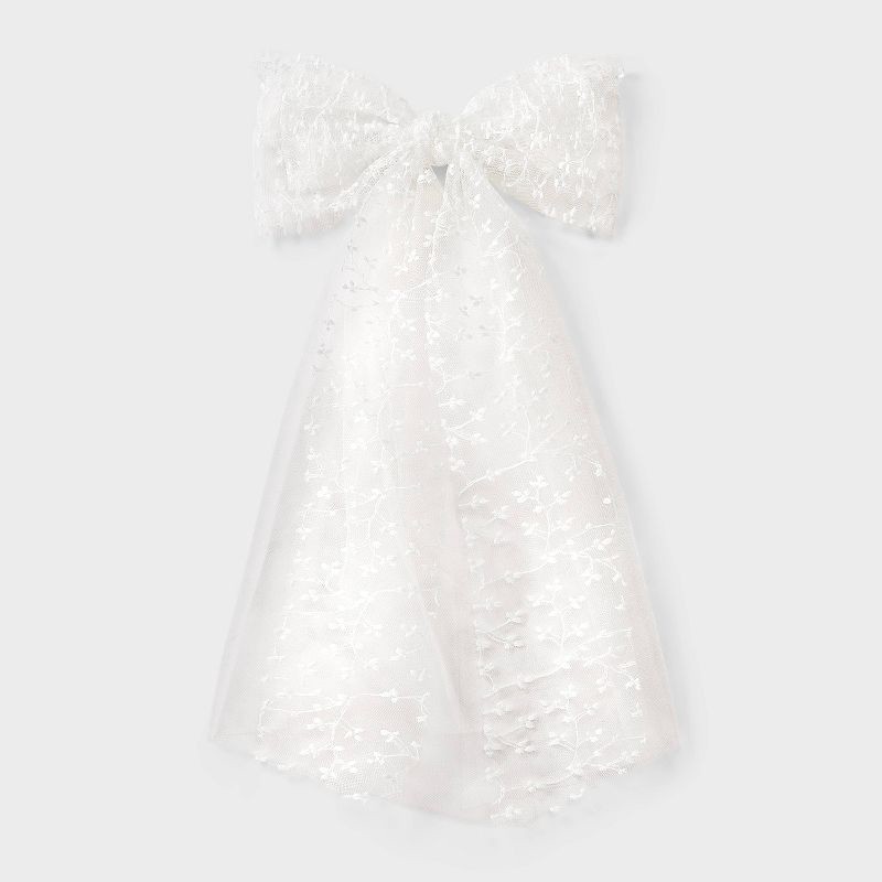 This Lace Double Bow Barrette from A New Day™ puts a lovely finishing touch on your going-out ensembles. Made with polyester and iron, this white barrette features a double bow design with delicate fl…