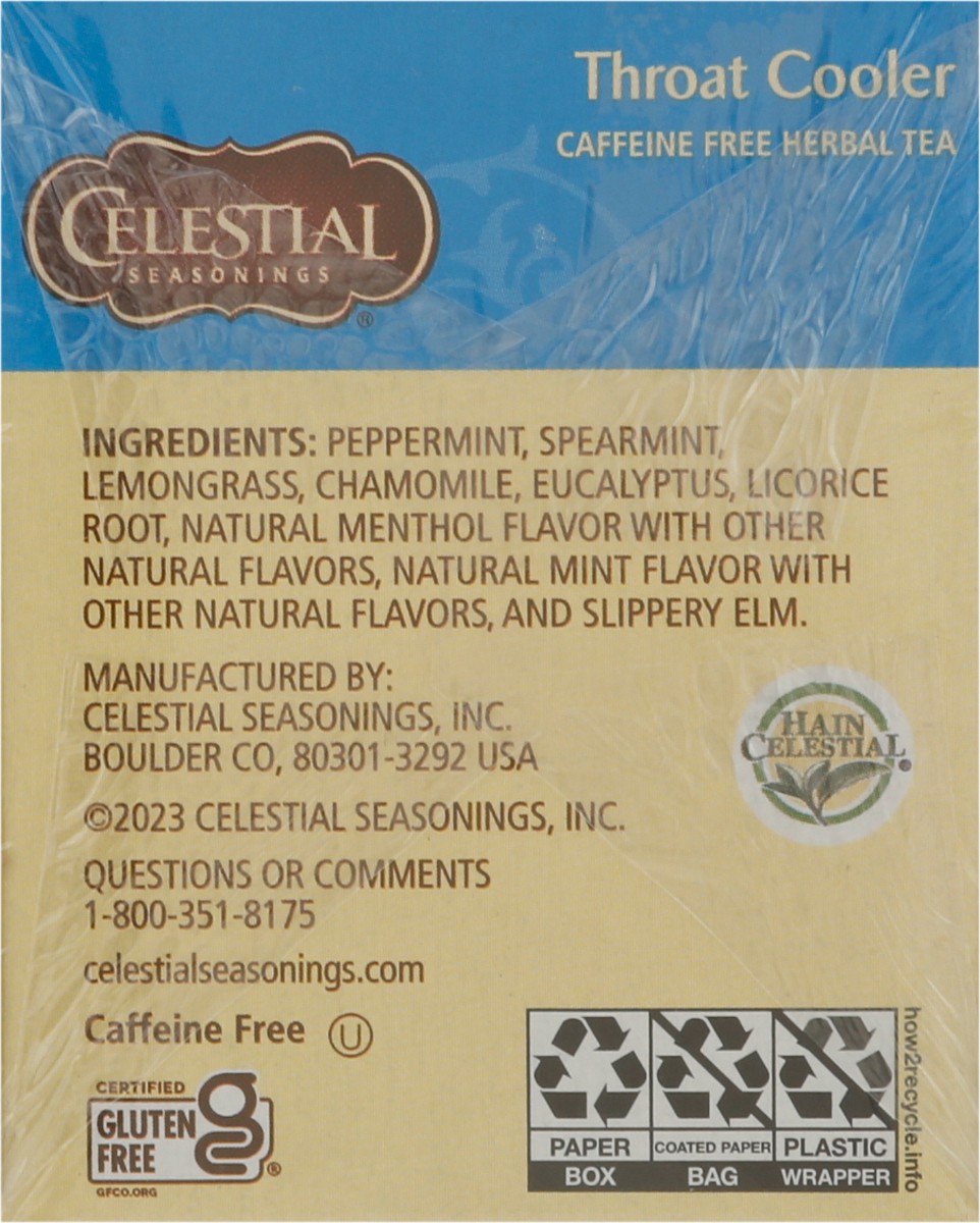 Celestial Seasonings Caffeine Free Throat Cooler Herbal Tea - 16 Tea Bags