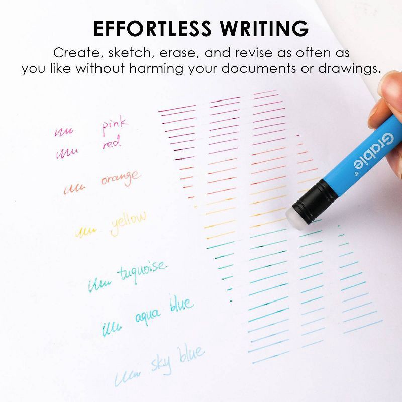 - USER-FRIENDLY DESIGN - Grabie's erasable gel pens feature a user-friendly design that mimics the familiar feel of a pencil, making them approachable for everyone. The convenient twist-to-open function allows for quick access to different colors, eliminating the hassle of lost caps and ensuring you're always ready to jot down ideas. The integrated pen eraser allows you to correct mistakes easily—an ideal ink eraser pen for students and creatives alike.