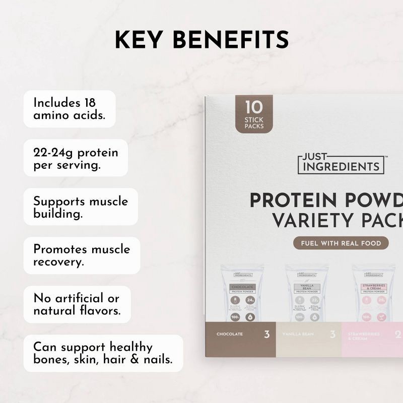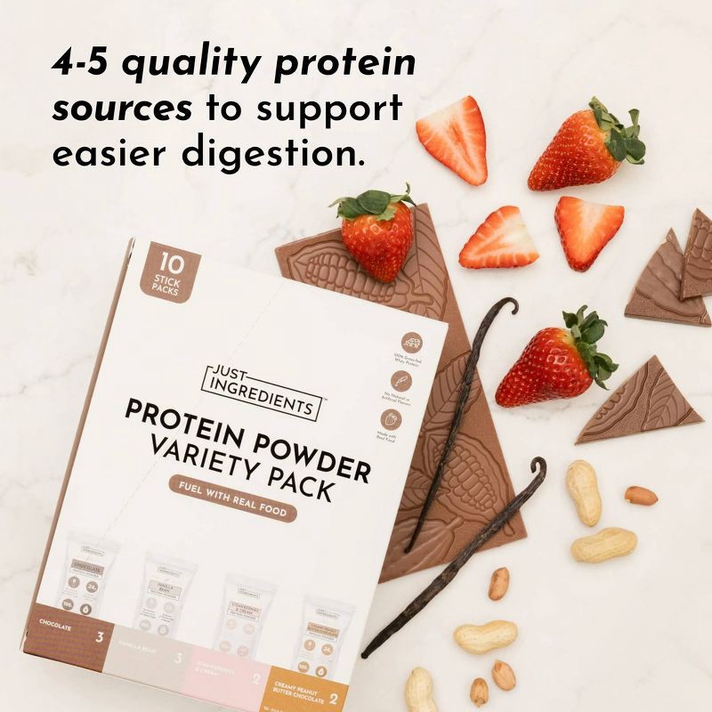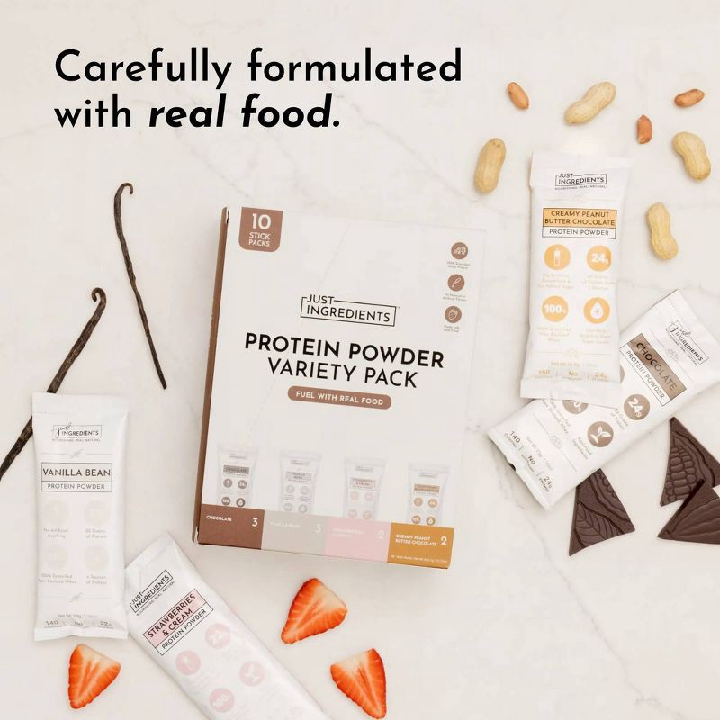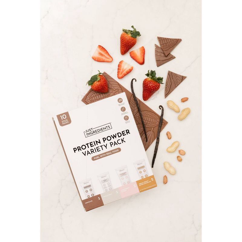 The Just Ingredients Variety Protein Powder Stick Pack offers a delicious and convenient way to enjoy nourishing, high-quality protein in four signature flavors: Chocolate, Vanilla Bean, Strawberries …