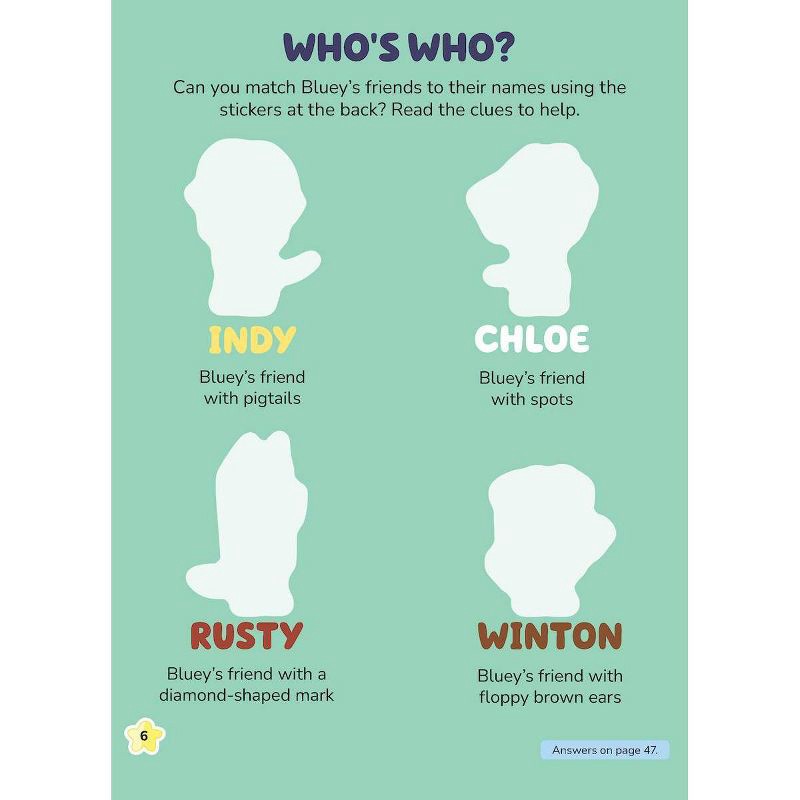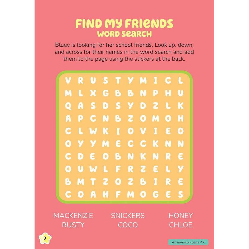 Book Synopsis Bluey loves spending time with her best friends at school and the park! Little ones will love using the 200+ stickers to complete activities with Bluey and all her friends. Bluey and he…