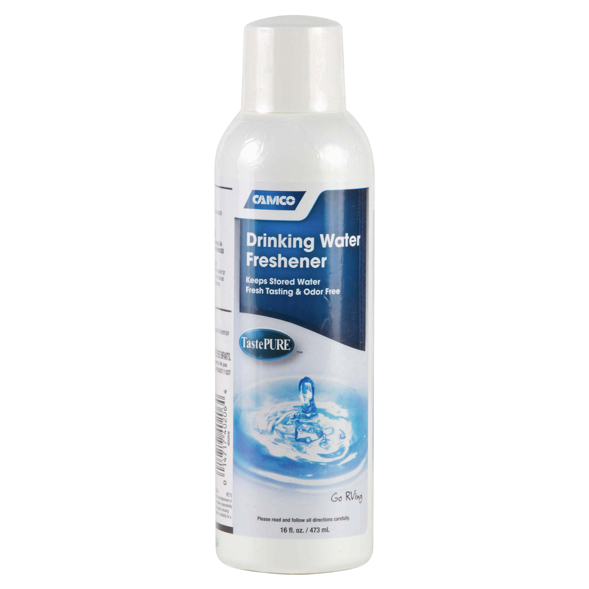 Camco TastePURE Drinking Water Freshener helps to eliminate algae and slime from your drinking water tank. Just 1 ounce for every 20 gallons of water helps remove bad smells and tastes.