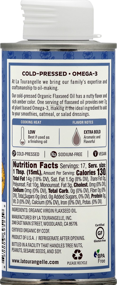 Contains an average of 7.5 g of omega 3 per serving. USDA Organic. Certified organic by CCOF. Vegan. Certified Gluten-free. Rich in omega-3. Sodium-free. Non GMO Project verified. nongmoproject.org. C…