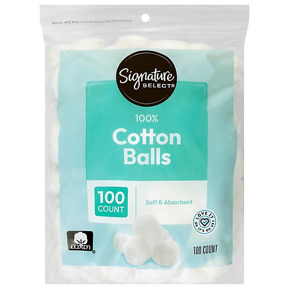 Signature Select/care Cotton Balls 100% Pure Soft & Absorbent Triple Size - 100 Count