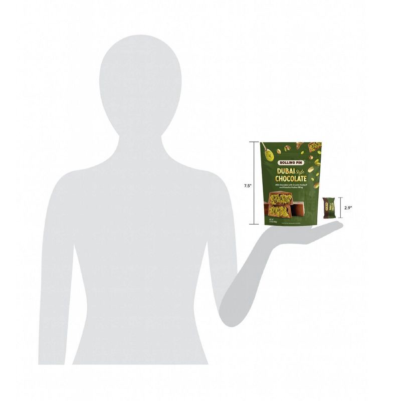 Rolling Pin Dubai Style Chocolate includes smooth milk chocolate filled with a pistachio praline and delicate kadayif cream crunch. Each individually wrapped piece delivers the perfect balance of crea…