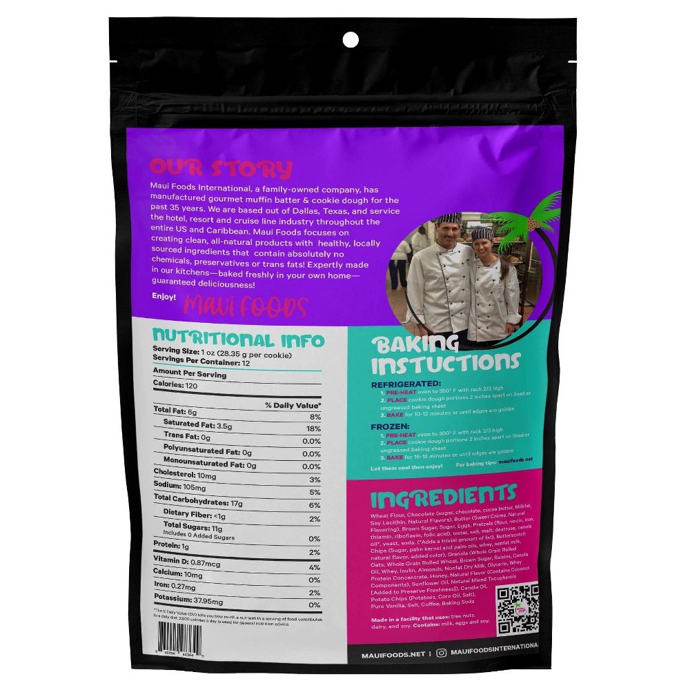 Maui Foods kitchen sink take and bake cookie dough is a delicious whole grain dessert option. This cookie is very unique and contains pretzels potato chips chocolate butterscotch granola and coffee. Y…