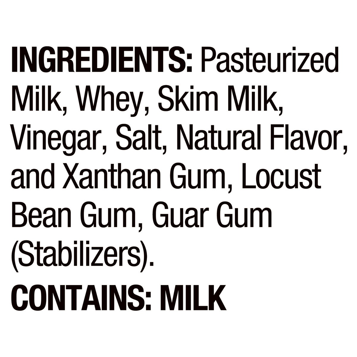 Pasteurized Milk, Whey, Skim Milk, Vinegar, Salt, Natural Flavor, and Xanthan Gum, Locust Bean Gum, Guar Gum (Stabilizers).