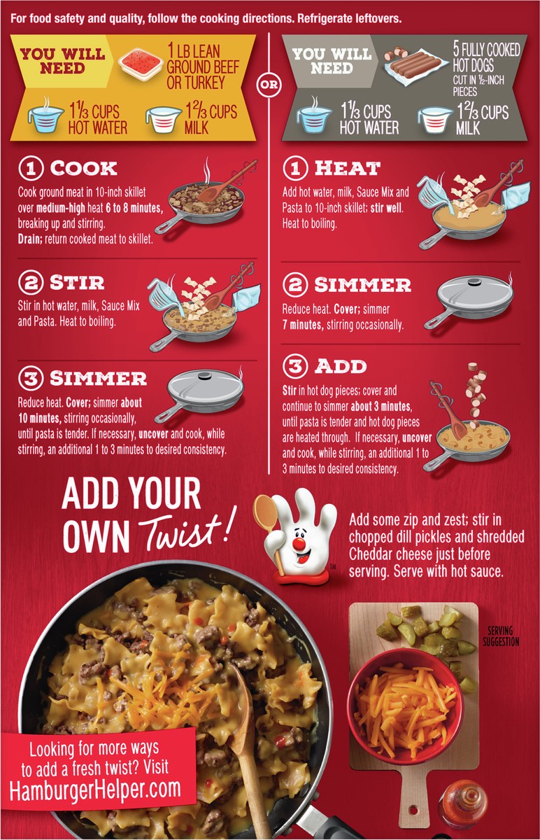 Cheddar Cheese Melt Hamburger Helper is made with 100% REAL cheese for the real taste you love most. Our products are made with NO artificial flavors or colors from artificial sources Add Your Own Twi…