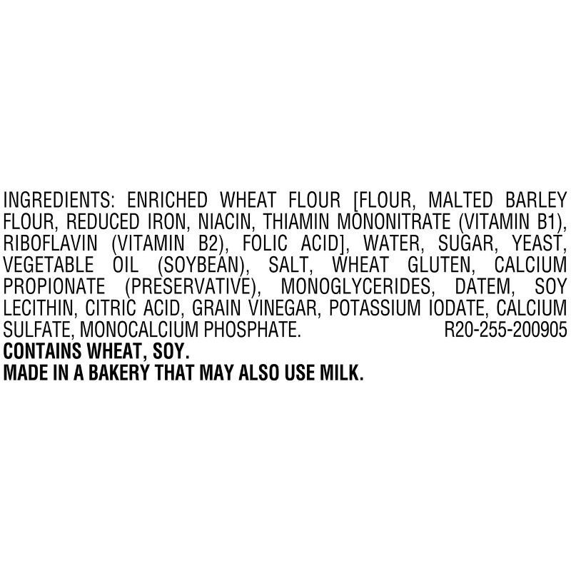 Enriched Wheat Flour [Flour, Malted Barley Flour, Reduced Iron, Niacin, Thiamin Mononitrate (Vitamin B1), Riboflavin (Vitamin B2), Folic Acid], Water, Sugar, Yeast, Vegetable Oil (Soybean), Salt, Whea…