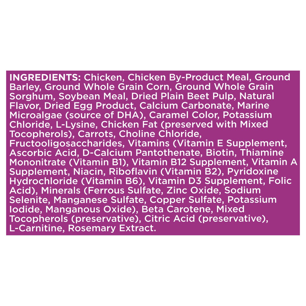 Chicken, Chicken By-Product Meal, Ground Barley, Ground Whole Grain Corn, Ground Whole Grain Sorghum, Soybean Meal, Dried Plain Beet Pulp, Natural Flavor, Dried Egg Product, Calcium Carbonate, Marine …