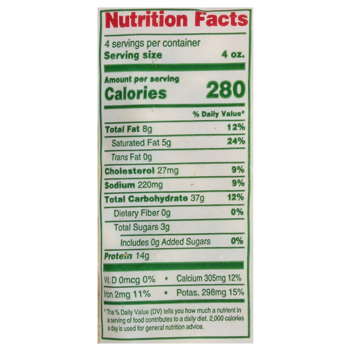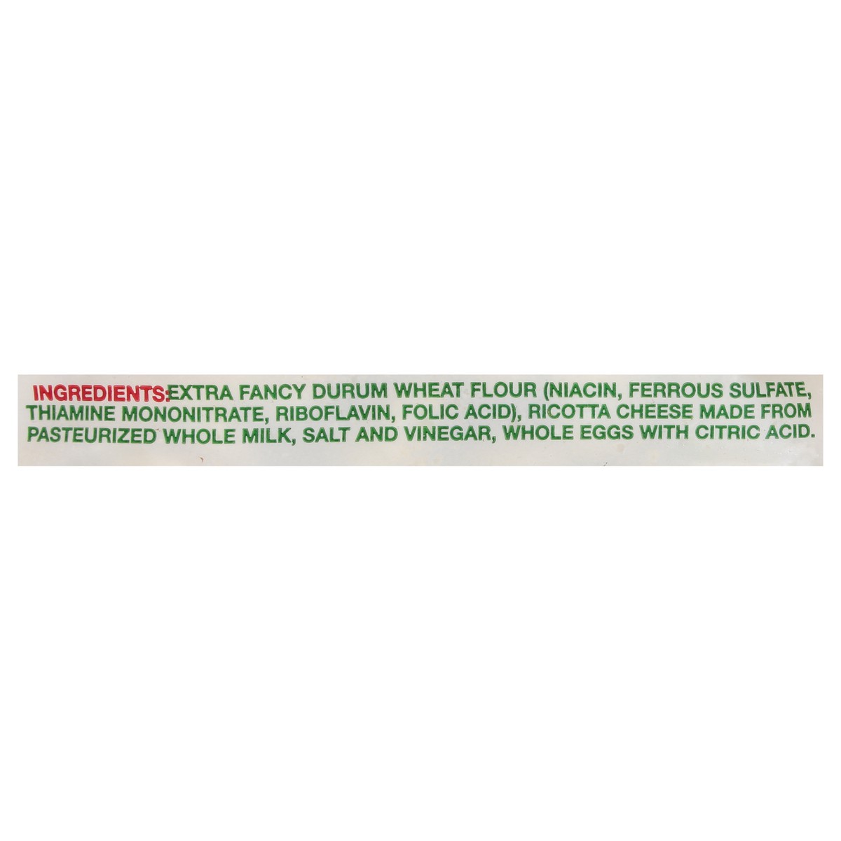 Extra Fancy Durum Wheat Flour (Niacin, Ferrous Sulfate, Thiamine Mononitrate, Riboflavin, Folic Acid), Ricotta Cheese Made from Pasteurized Whole Milk, Salt and Vinegar, Whole Eggs with Citric Acid.