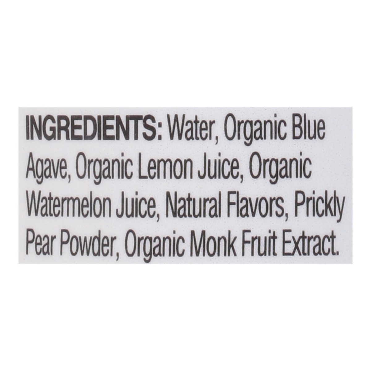 Water, Organic Blue Agave, Organic Lemon Juice, Organic Watermelon Juice, Natural Flavors, Prickly Pear Powder, Organic Monk Fruit Extract.