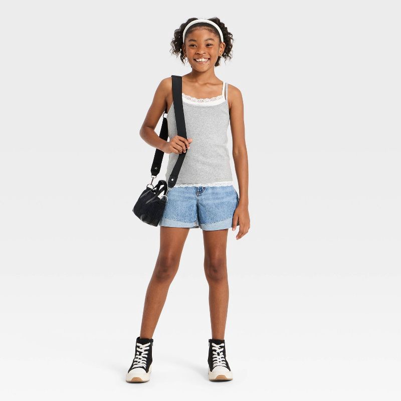 They'll be ready for a fun day out in these High-Rise A-Line Jean Shorts from art class™. Crafted from a mix of cotton, recycled cotton and spandex, these high-rise rolled cuffs shorts are designed wi…