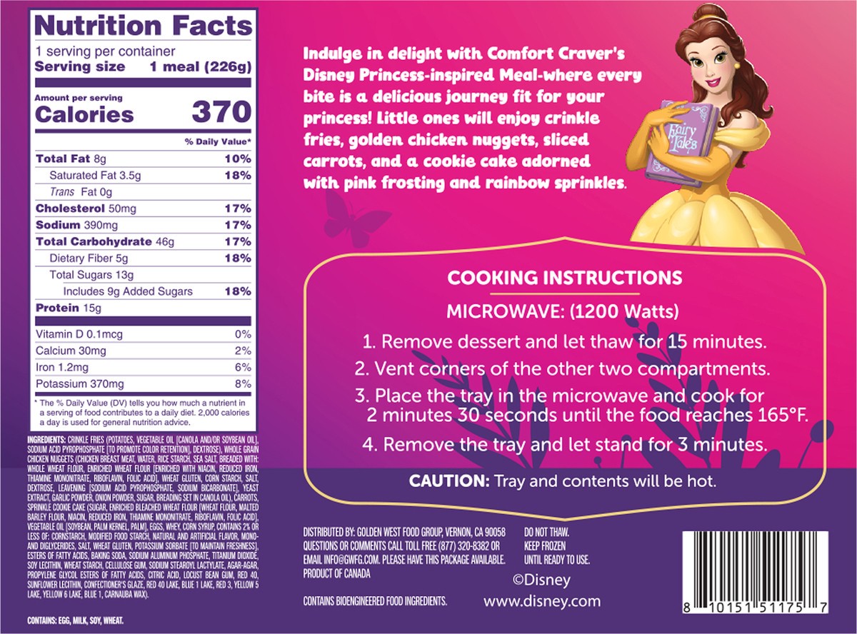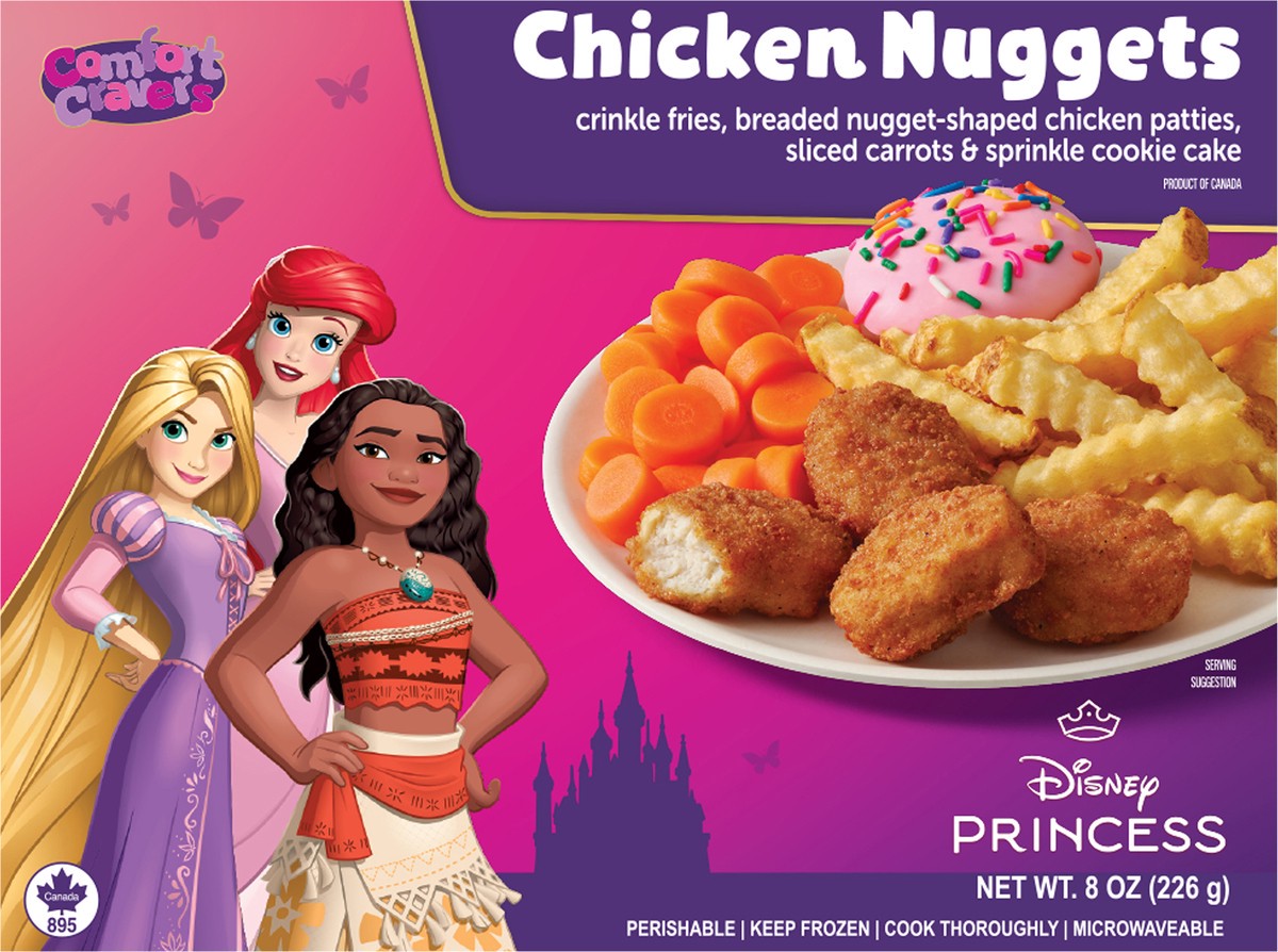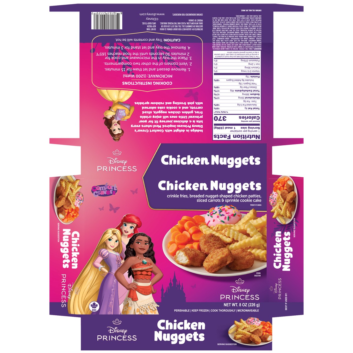 Comfort Craver's Disney Princess Chicken Nuggets with Crinkle Fries, Baby Carrots, and Sprinkle Cookie Cake, 8 oz (Frozen)Golden chicken nuggets made from tender white meat chicken, breaded and cooked…