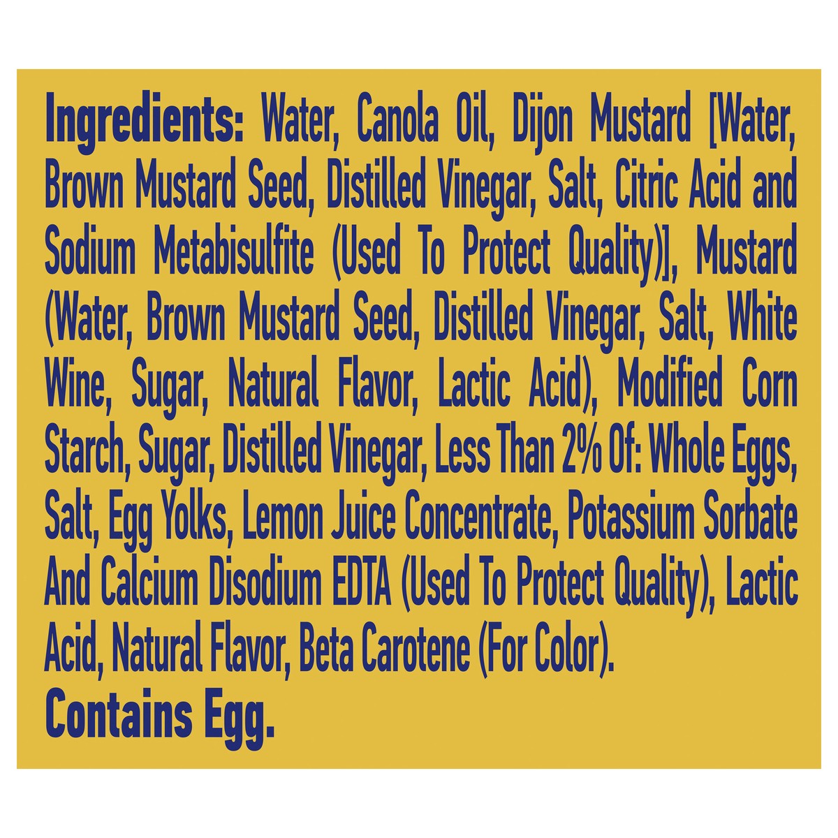 Water, Canola Oil, Dijon Mustard [Water, Brown Mustard Seed, Distilled Vinegar, Salt, Citric Acid and Sodium Metabisulfite (Used to Protect Quality)], Mustard (Water, Brown Mustard Seed, Distilled Vin…