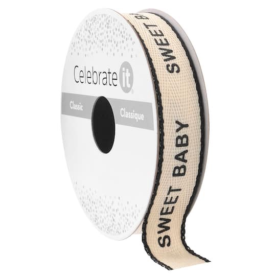 Buy this 5/8" x 7yd. Black Sweet Baby Faux Linen Ribbon by Celebrate It Classic at Michaels. Featuring a black "SWEET BABY" message with black edging, it's perfect for embellishing baby shower gifts, …