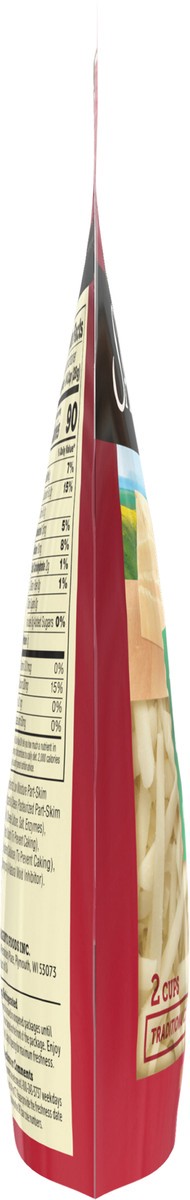 Low Moisture Part-Skim Mozzarella Cheese (Pasteurized Part-Skim Milk, Cheese Culture, Salt, Enzymes), Potato Starch (To Prevent Caking), Powdered Cellulose (To Prevent Caking), Natamycin (A Natural Mo…