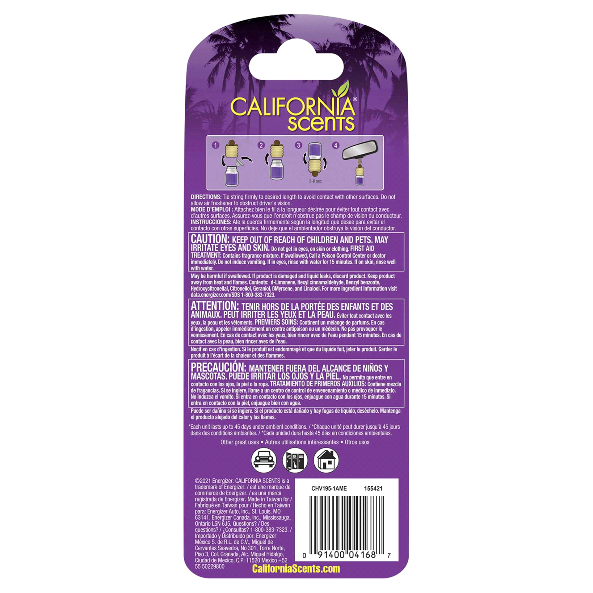 Let it dangle and enjoy the scents of California Bring the tantalizing aromas of the west coast to your car with bold fragrances from California Scents. Simply tie the Hanging Vial to your rear view m…