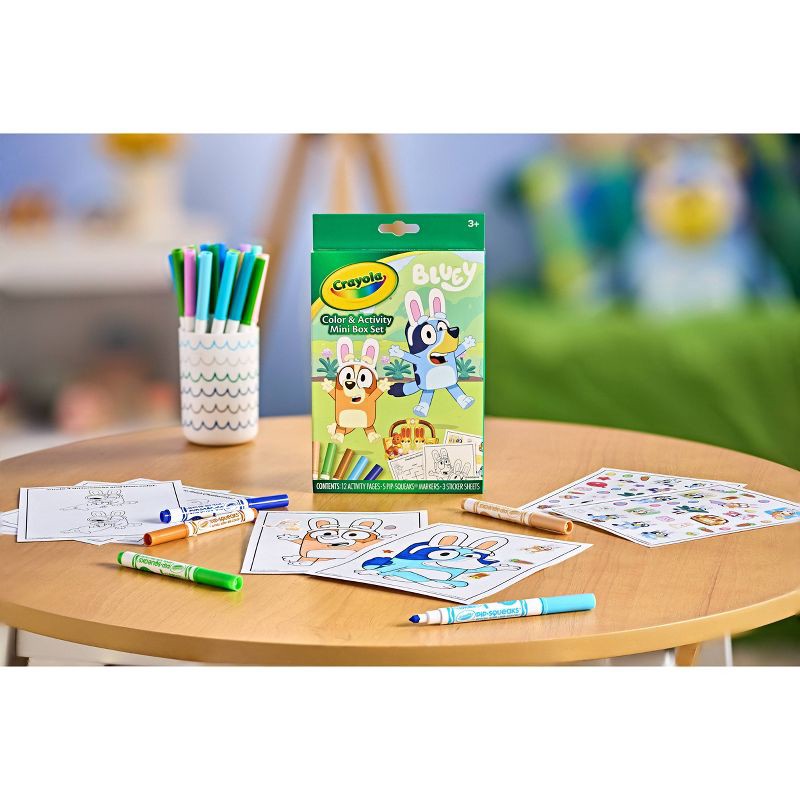 - BLUEY COLORING & ACTIVITY SET: Includes 12 Bluey Easter-themed 5" x 7" Coloring Pages, 5 Crayola Pip-Squeaks Markers, and 3 Bluey Sticker Sheets.