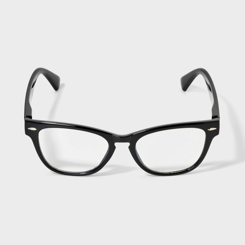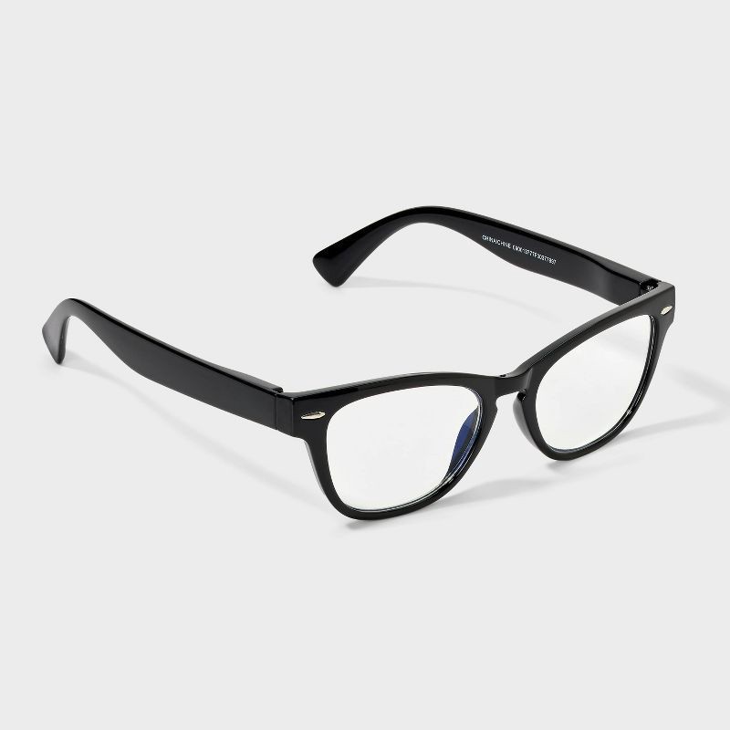 Women's Shiny Plastic Cat Eye Blue Light Filtering Glasses 1.0 Diopter - Universal Thread™ Black