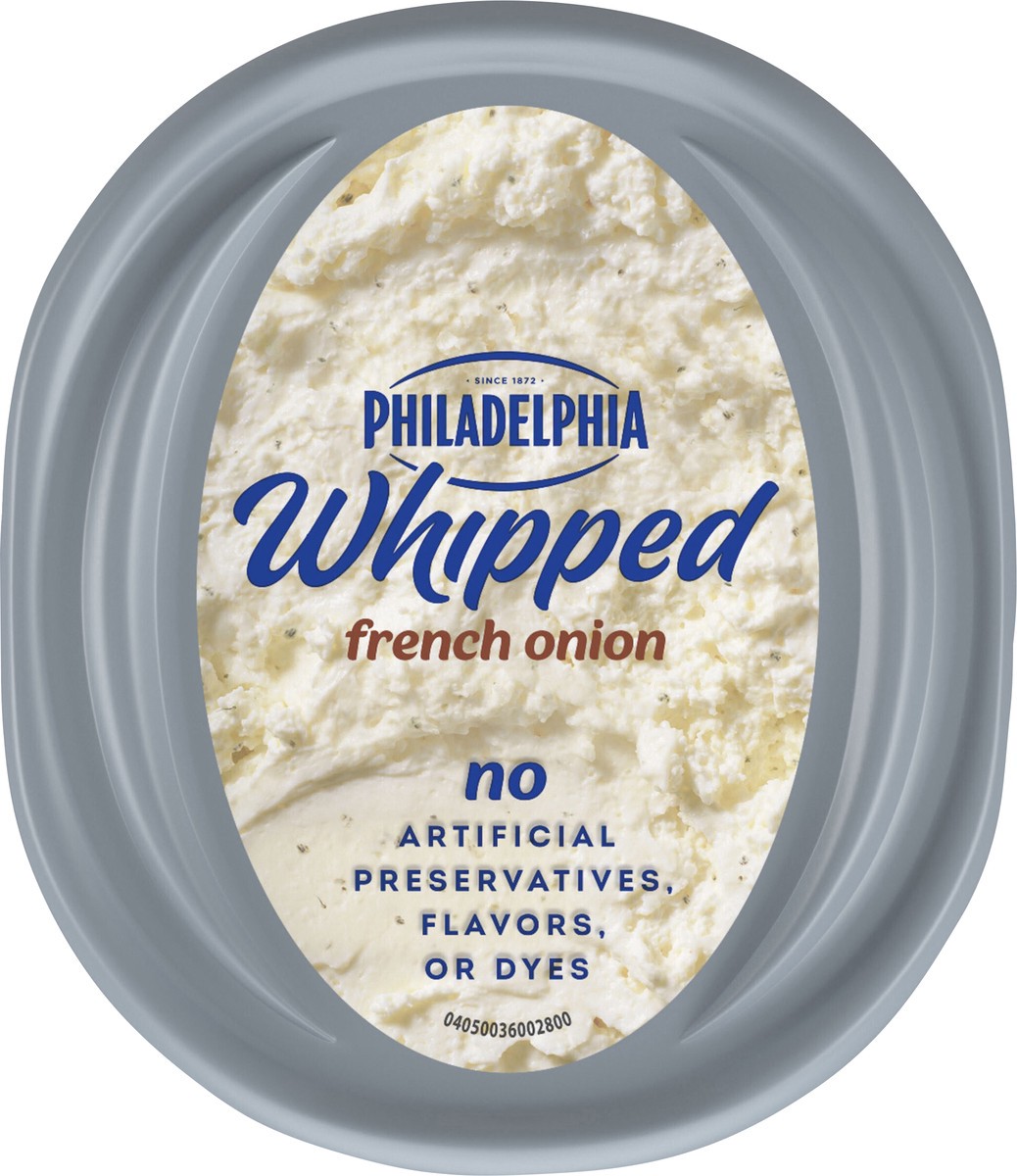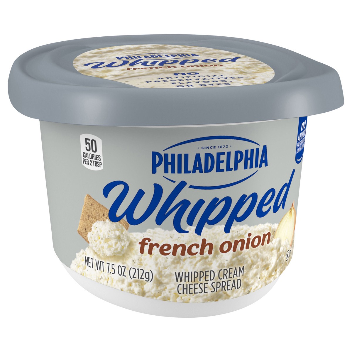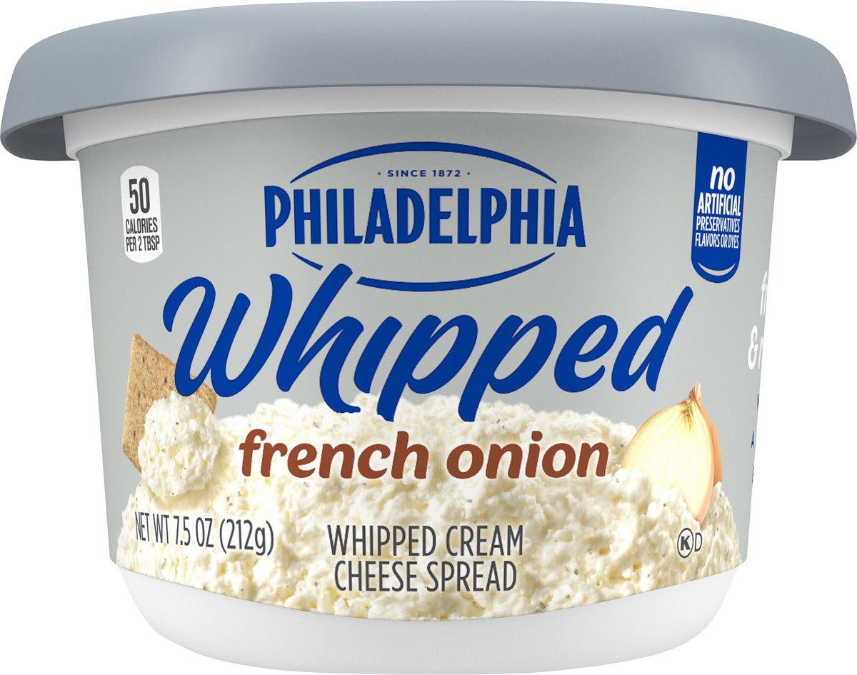 - WHIPPED CREAM CHEESE SPREAD TUB: One 7.5 oz tub of Philadelphia French Onion Whipped Cream Cheese Spread