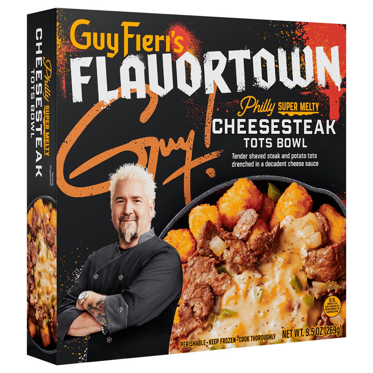 Guy Fieri's Flavortown Philly Super Melty Cheesesteak Tots Bowl is a unique culinary experience. This frozen meal combines the classic flavors of a Philly cheesesteak with crispy tots. Plus, the decad…