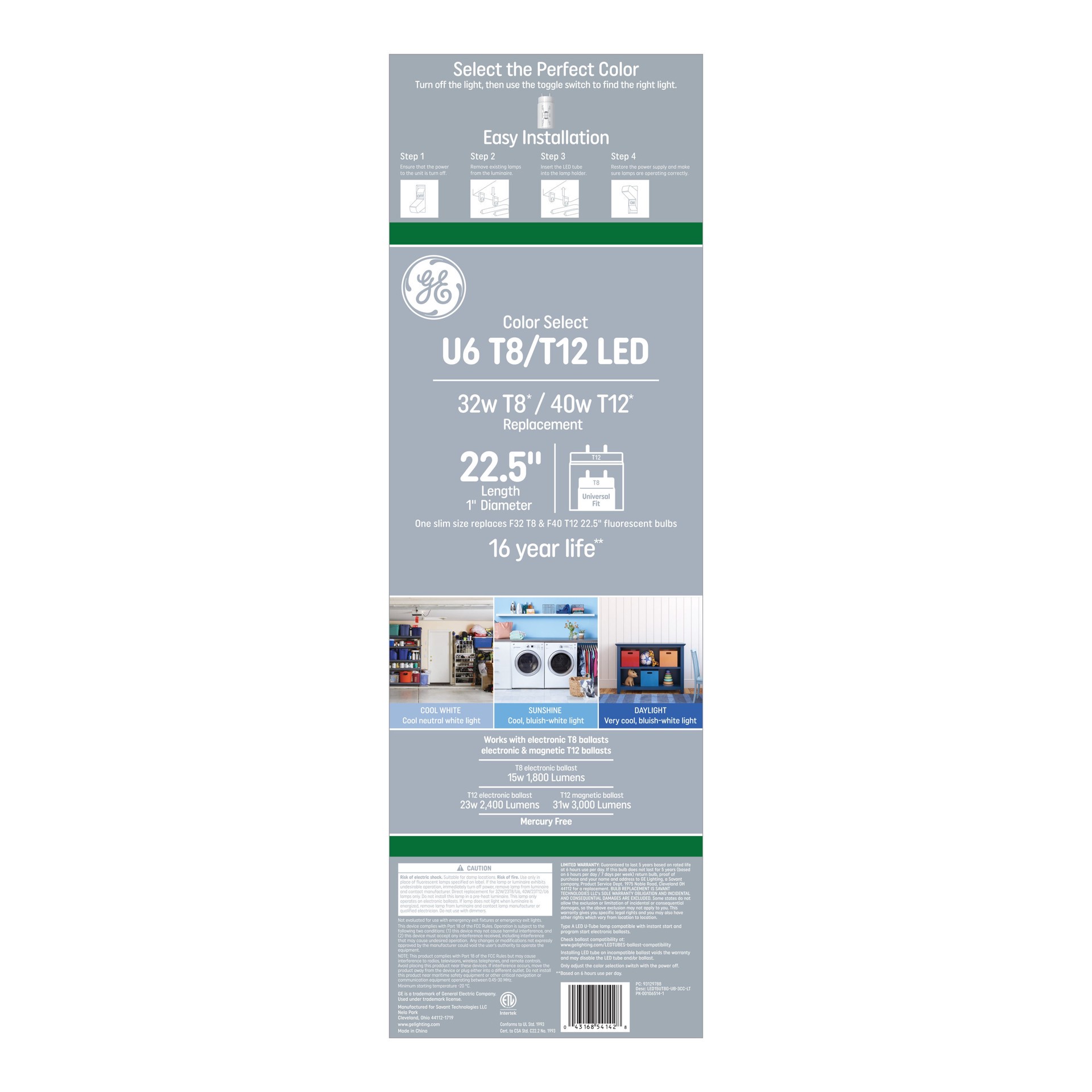 GE Universal Color Select LED 32 -Watt EQ T8 Color-changing Medium bi-pin base LED Tube Light Bulb