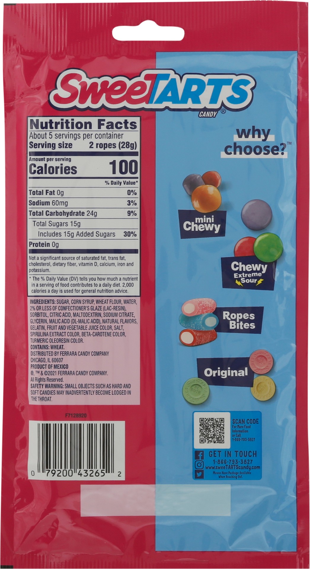 Sweet and tart – SweeTARTS Ropes are delightfully sweet and boldly tart. This bag contains one 5-ounce pack of SweeTARTS Twisted Rainbow Punch Ropes. Each soft rope is a bendable fusion of fun. They''…